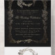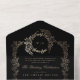 Ebony Black Gold Botanical Wreath Classic Wedding All In One Invitation