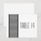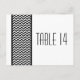 Chic and modern Chevron Border Table Number Postcard featuring a simple chevron pattern border in black and white. This stylish design will set the tone for an elegant wedding. Easy to customise, simply add the appropriate table number(s) in the text field provided. Click "Customise It" to find more personalisation options.