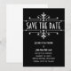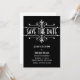 Simple and elegant Fancy Ornamental Save the Date Announcement in black and white featuring a sophisticated art deco style ornamental flourish border. Easy to customise, simply add your wedding details in the text fields provided. Click "Customise It" to find more personalisation options.