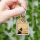 Quirky and unique Vintage Gramophone Premium Keychain in black featuring a silhouette of an old-fashioned gramophone and a cascade of musical notes on a digital art rendered paper background. This chic key fob will keep your keys handy with vintage flair and is perfect for any music lover. Easy to customise, simply personalise with the text of your choosing. Click on the "Customise It" button to find additional personalisation options.