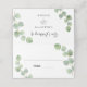 A modern and elegant. Eucalyptus greeery sprigs. Personalise and your names and the wedding date. Add your guests names and their table number by hand.