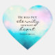 Inspirational scripture sticker depicts a blue, white and lavender space background. It features Bible Verse Ecclesiastes 3 11, "He has put eternity into man's heart."