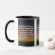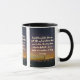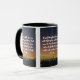 This two-tone mug features a brusher font with white letters gold outline displaying the "Ecclesiastes 4:10 KJV" bible scripture verse over a background picture showcasing dark silhouette images of people standing at the rails of a ocean pier under an abstract coloured sky with a multi coloured style. This verse is referencing the Book Of Ecclesiastes 4th chapter showing the 10th verse in this bible scripture quote theme from the King James bible. The rim & handle are glazed in matching colours available in 11-ounce or 15-ounce sizes microwave and dishwasher safe ceramic construction.