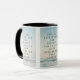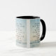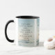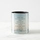 This two-tone mug features a lora font with black letters showcasing the "Ecclesiastes 4:9 KJV" bible scripture verse over a background picture displaying a cloud cover with dark tones view from above under a clear light blue sky plus the dual colour look with an above cloud theme. This verse is referencing the Book Of Ecclesiastes 4th chapter showing the 9th verse in this bible scripture quote theme from the King James bible. The rim & handle are glazed in matching colours available in 11-ounce or 15-ounce sizes microwave and dishwasher safe ceramic construction.