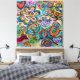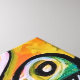 The artwork is colourful and playful, objects on it came from tribal imagery.