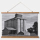 This black and white image captures a striking rural industrial scene, featuring towering rural grain silos and their weathered outbuildings. The monochrome style enhances the textures of aged concrete, corrugated metal, and overgrown grass, evoking a sense of quiet history and resilience in the Australian countryside. Atop the silos sits a central tower, likely housing machinery for grain handling and distribution. Flanking the silos are two smaller buildings with corrugated metal roofs, possibly used for storage or operational support. The surrounding landscape is open and grassy, dotted with a few trees, reinforcing the agricultural setting. This image blends rustic charm with industrial character, making it ideal for farmhouse décor lovers, rural landscape enthusiasts, and anyone who appreciates timeless agricultural architecture.