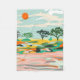 "Echoes of the Sahara" captures the serene beauty of a desert landscape with an abstract blend of warm earth tones and vibrant shades. The minimalist trees and glowing orange sun evoke a peaceful, timeless atmosphere.