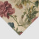 A collage background paper print of faded script on aged paper, faced with a bright eclectic display of roses, peonies, asters.