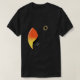 I give wanted to give this a 4 instead of a 5 because these Basic DARK T0shirts run unexpectedly SLIM or Narrow. Which is great if you do not have a potbelly, but I have a paunch. It isn't the shirt's fault that I've got a beer belly. The design and shirt itself is a quality cotton shirt. The color is more of a deep purple, but still a very pretty color. The Basic DARK T-shirts run a bit SLIMMER than the Basic Ts. The neck is a fraction narrower (or seems to be narrower) also. I'm a paunchy middle-aged woman and my neck is 12 inches (31cm) thick and the neckline fell about the same as in the photo of the man, and I had the desire to tug it a bit. So if you're a thick necked man or like loose shirts, be aware these are slimmer shirts. Once I get rid of my lockdown paunch it'll look great. The shirt washed well in cold water with no apparent bleeding. We don't have a dryer, so it hung dry. Did not shrink. Love the colors and the design. The design looks smaller on my shirt than it does on the model on-line. But still, it looks good on the shirt. The printing looks as it does on the model, just the size seems fractionally smaller. Washed garment in cold water, hung dry and design appeared unaffected.