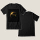 The T-shirt features a bold, eye-catching design of a total solar eclipse. The sun's radiant corona shines brightly from behind the dark silhouette of the moon, creating a dramatic contrast. The design is simple yet powerful, with the eclipse taking center stage against a black background.