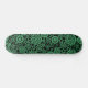 A skateboard with interesting and diverse abstract design consisting of various circular shapes in different styles connected by thin lines like a network or ecosystem.