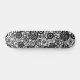 A skateboard with interesting and diverse abstract design consisting of various circular shapes in different styles connected by thin lines like a network or ecosystem.