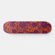 A skateboard with interesting and diverse abstract design consisting of various circular shapes in different styles connected by thin lines like a network or ecosystem.