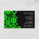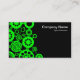 A business card template with an original abstract network motif on the left. Company name and business type on the front with Name, address telephony, email and web details on the back.