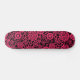 A skateboard with interesting and diverse abstract design consisting of various circular shapes in different styles connected by thin lines like a network or ecosystem.