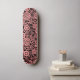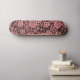 A skateboard with interesting and diverse abstract design consisting of various circular shapes in different styles connected by thin lines like a network or ecosystem.