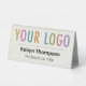 Easily personalise our tall double sided desk name plate with your company logo, name, job title, or other custom text. Sold in light ecru and other colours (all colours are customisable). The dimensions are 6 inch x 3 inch. No minimum order quantity and no setup fee.