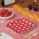 Those red square paper plates featuring a lovely edelweiss pattern will be perfect for your next #Swiss party . Look for matching items in the collection below .
