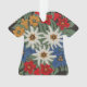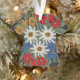 An image of a floral pattern with a needlework look of Edelweiss white Alpine flowers of Europe on your product. Blue, red, yellow, and white colours. Leontopodium alpinum of Switzerland, Germany, and Austria.
