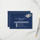 Elegant wedding RSVP response card, with a European influence, done in a blue-on-blue damask with graphics single white Edelweiss bloom, at the top. Personalise the white custom text to suit your needs.