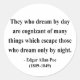 "They who dream by day are cognizant of many things which escape those who dream only by night." - Edgar Allan Poe