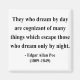 "They who dream by day are cognizant of many things which escape those who dream only by night." - Edgar Allan Poe