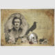 Moody and dark Victorian Edgar Allen Poe ephemera including portrait in ornate engraved oval frame, raven perched on a skull, handwritten verse in Poe's hand of The Raven, Annabel Lee sheet music cover and spray of old roses on grungy distressed sepia parchment. Suitable for decoupage art.