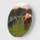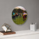 Clock featuring Edgar Degas’ oil painting Race Horses at Longchamp (1871-4). A group of jockeys sit on their horses at the Longchamp racetrack in Paris. A fabulous gift for horse lovers and fans of Impressionism!