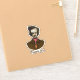 Terrified Edgar Allan Poe watching a gold bug climping on his tie. Coloured ink pen sketch. Custom text.