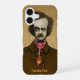 Terrified Edgar Allan Poe watching a gold bug climping on his tie. Coloured ink pen sketch. Custom text.