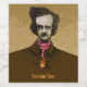 Terrified Edgar Allan Poe watching a gold bug climping on his tie. Coloured ink pen sketch. Custom text.