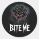 Edgy 'Bite Me' Gothic Rose Design Classic Round Sticker