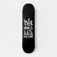 With the quote, "Hit the Deck and Kick Asphalt", rendered in grunge-style lettering on a black background, this skateboard design pays homage to skateboard lingo while being both edgy and funny.