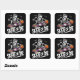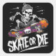 Edgy Halloween Skeleton Riding Skateboard: Monochr Square Sticker
