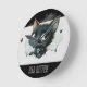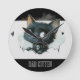 Edgy Kitten Illustration - "Bad Kitten" Text Round Clock