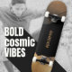 This modern deck features a bold black-and-gold cosmic, galaxy-inspired design. It serves as a personalised canvas where you can easily update the name, colours, and font to reflect your unique identity. A striking choice for your next skate session or as a decorative piece for your room. Create your own custom look today to match other items in our collection. ©Susanne Sachers - Sunny Wanderlust 🌞✈️