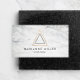 A simple double-triangle motif in faux metallic rose gold and black becomes an eye-catching and modern logo on these creative business cards. Set on a white marble background for a luxe aesthetic. This design is great for jewellery designers, crafters, boutiques, designers, bloggers or any creative profession. The double-sided card design allows ample room on the back for your contact info.
