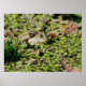 Head of edible frog (Pelophylax esculentus) on water among duckweed
