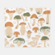 Edible Mushrooms Linocut Vintage Pattern Fleece Blanket