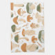 Edible Mushrooms Linocut Vintage Pattern Tea Towel