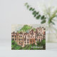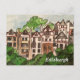 Attractive, colourful, Watercolour painting ( on a postcard) of Ramsay Garden - the iconic houses next to Edinburgh castle.