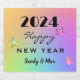Whether you're serving or giving it as a gift, this bottle of sparkling wine is sure to make a statement. A colourful gradient rainbow background, bright stars, 202X and Happy New Year greeting in black script and typography, decorate these 4" x 3.5" Sparkling Wine Bottle Labels. Change or remove name and Year using the Template provided. Each set includes 6 matte labels. They are scratch-resistant and waterproof. See "About This Product" at side for more information.