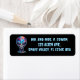This return address label features an illustration of an alien beingien to the left and the name and address to the right. The text is editable so go ahead and change the color, style and size of the font to make it your own. The background colour can be changed, too.