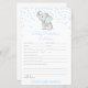 Editable Baby Prediction and Advice Baby Shower Card Printed blue elephant, elephant baby shower, boy elephant, elephant theme, elephant party
