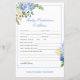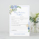 Editable Baby Prediction and Advice Baby Shower Card Printed blue florals, boy baby shower, elegant blue baby shower, blue flower,