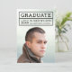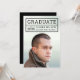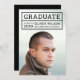 Modern photo graduation party invitation with the graduate's details within a grid on the front. Card has an editable background colour (click customise to change) on the back side.
