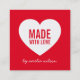 Modern minimalist business card with the word "Made with Love" in bold font against a white heart and a stylish script for your name or store name. This versatile business card has an editable background colour (change it to whatever you like) and change font colour to match as well which you can access by clicking "customise" button. This card also works well as a gift tag, favour tag or product tag.