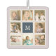 Monogram air freshener with 8 square photos arranged in a grid layout with a white border around them on the front and back side making it 16 photos in total that you can replace with you own photos all against an editable background colour (click "customise" to change background colour). You can also add your family initial and change the background colour of the monogram box by clicking "customise" and changing the fill colour of the "rectangle".