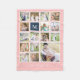Monogram blanket with 16 photos arranged in a grid layout each with a white border around them and all against an editable background colour (click "customise" to change background colour). You can also add your family name in a stylish calligraphy font, your family initial, year established and change the background colour of the monogram box by clicking "customise" and changing the fill colour of the "rectangle". This blanket is perfect for wedding gifts, family keepsakes, mother's day gifts, etc.
