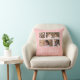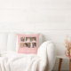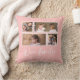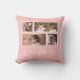Pillow featuring the words "Our Family" in a white stylish script with 4 photos with a white border around them arranged side by side on the front and back side making it 8 photos in total that you can replace with you own photos against an editable background colour (click "customise" to change background colour). You can also add your family name and the year established. Perfect for home decor, newlyweds, family keepsakes, etc.